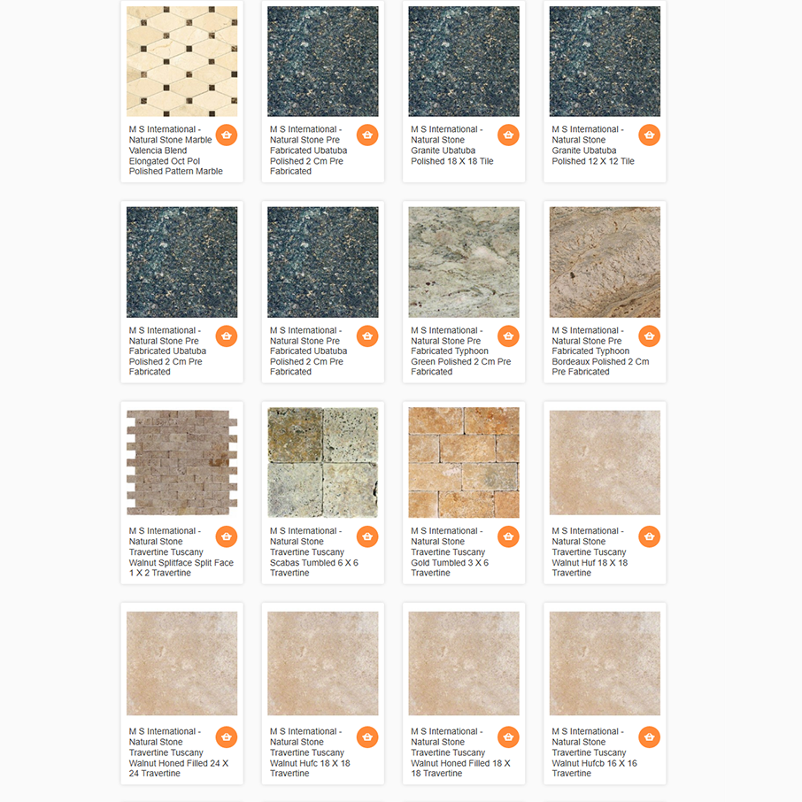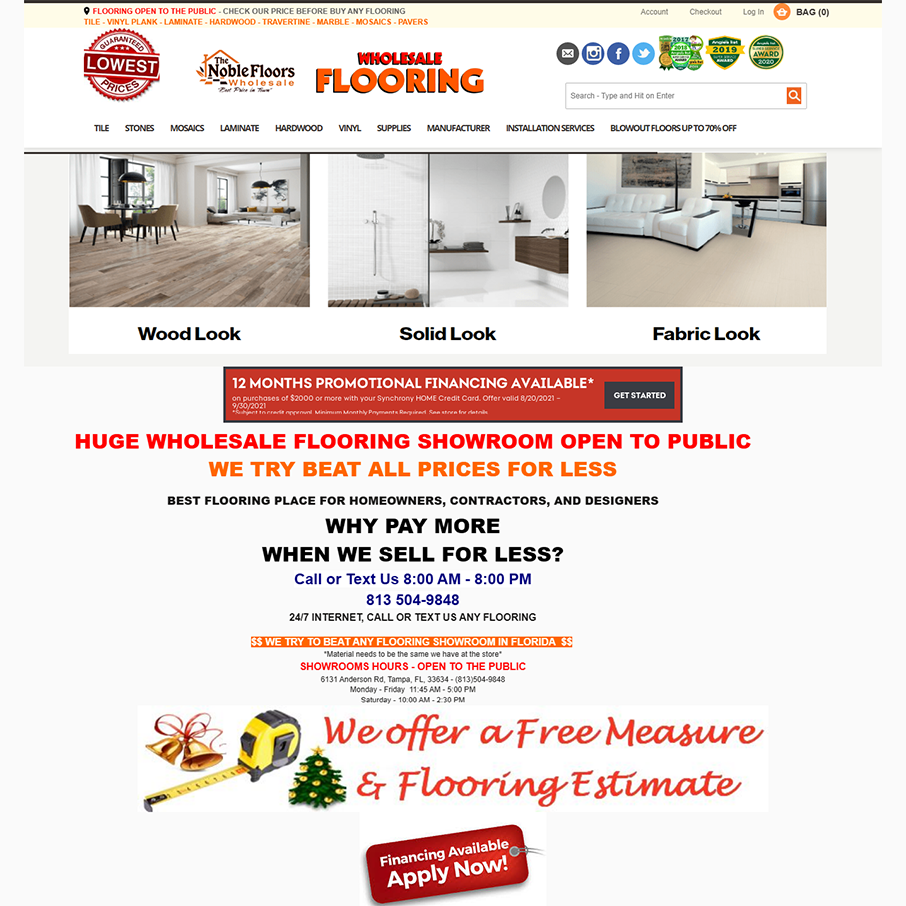 • We have at our showroom at wholesale price: +- 45650 different Porcelain/Ceramic/Wood Tiles from Italy, Spain, USA, and more… +- 150 different Stones: Travertine, Marble, Limestone… +- 800  differents Engineered Wood and Solid Hardwood Floors +- 150 different Laminate Floors +- 810 Luxury Vinyl Plank Floors - LVP - LVT - WPC - SPC +- 2400 Glass, Mosaic Tiles for Backsplashes and designs for Bathrooms.